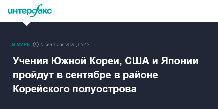 Учения Южной Кореи, США и Японии пройдут в сентябре в районе Корейского полуострова