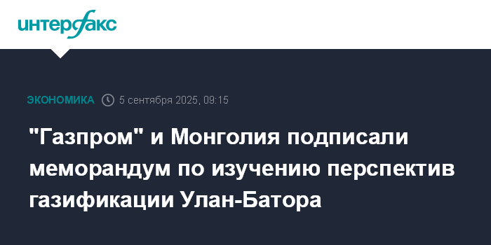 "Газпром" и Монголия подписали меморандум по изучению перспектив газификации Улан-Батора