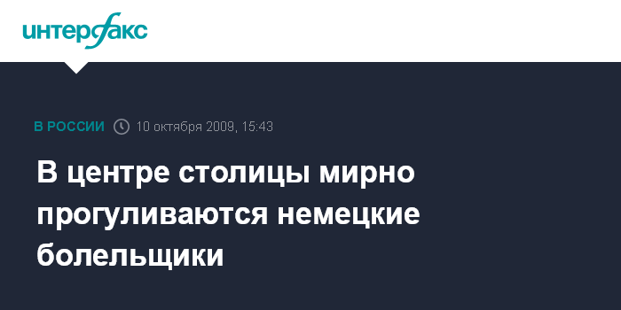Москва. 10 октября. INTERFAX.RU - В преддверии ключевого для сборных России и Германии по футболу матча, который пройдет в субботу вечером в столичных "Лужниках", на улицах столицы появились небольшие группы немецких болельщиков.