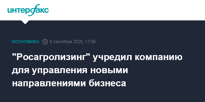 "Эта компания создана для координации направлений, которые по своей бизнес-модели отличаются от основной лизинговой деятельности, - сообщили "Интерфаксу" в пресс-службе "Росагролизинга". - По сути, это управляющая компания, которая учреждена в рамках реализации стратегии развития, включающей диверсификацию бизнеса".