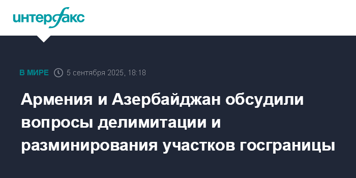 "В соответствии с достигнутыми 8 августа 2025 года в Вашингтоне договорённостями стороны обсудили вопросы, связанные с делимитацией и разминированием соответствующих участков/отрезков линии границы, а также с восстановлением и строительством необходимых инфраструктур и со сроками их реализации с целью синхронизации действий в области создания коммуникаций", - заявили в пресс-службе МИД Армении.