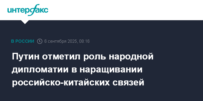 Путин отметил роль народной дипломатии в наращивании российско-китайских связей