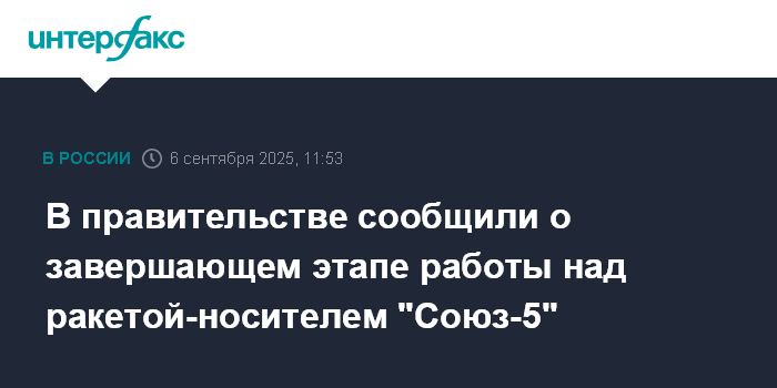 В правительстве сообщили о завершающем этапе работы над ракетой-носителем "Союз-5"