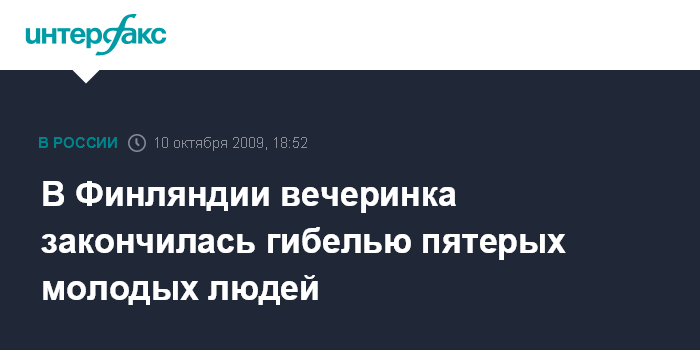 В Финляндии вечеринка закончилась гибелью пятерых молодых людей