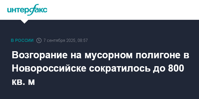Москва. 7 сентября. INTERFAX.RU - Оперативные службы Новороссийска продолжают тушить пожар на мусорном полигоне, сообщает глава города Андрей Кравченко в воскресенье.
