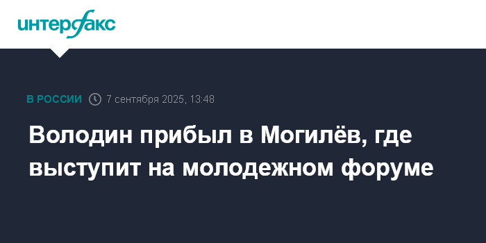 Володин прибыл в Могилёв, где выступит на молодежном форуме