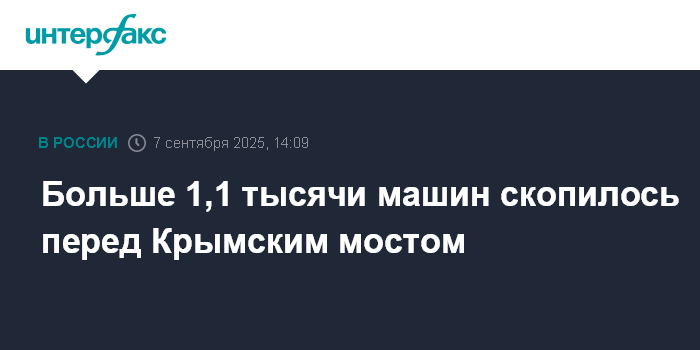 Москва. 7 сентября. INTERFAX.RU - Проезда через досмотровые пункты на Крымском мосту в воскресенье днем ожидают 1 133 автомобиля, сообщили в инфоцентре, освещающем ситуацию на автомобильных подходах к мосту.
