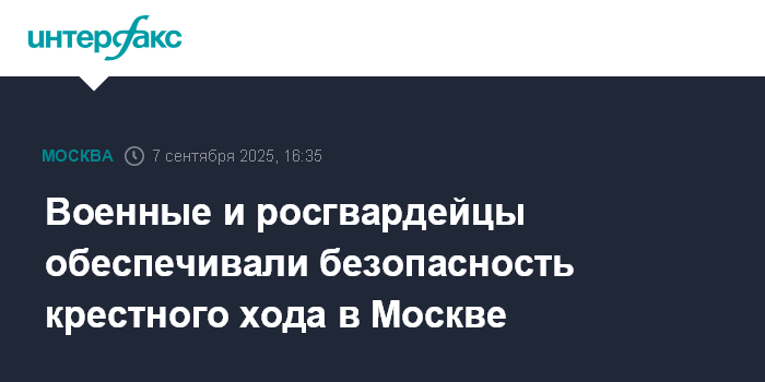 Москва. 7 сентября. INTERFAX.RU - Более 1,2 тыс. сотрудников Главного управления Росгвардии по Москве и военнослужащих 55-й дивизии Центрального округа войск национальной гвардии приняли участие в обеспечении общественной безопасности на крестном ходе, сообщили в пресс службе Росгвардии.