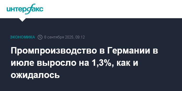 Промпроизводство в Германии в июле выросло на 1,3%, как и ожидалось