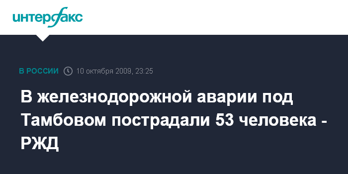 В железнодорожной аварии под Тамбовом пострадали 53 человека - РЖД
