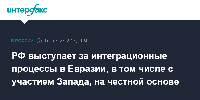 РФ выступает за интеграционные процессы в Евразии, в том числе с участием Запада, на честной основе