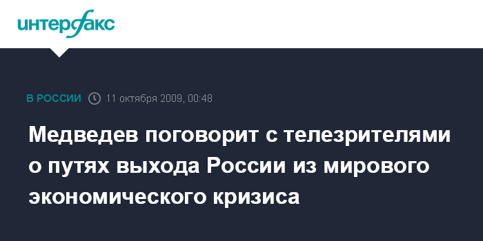Медведев поговорит с телезрителями о путях выхода России из мирового экономического кризиса
