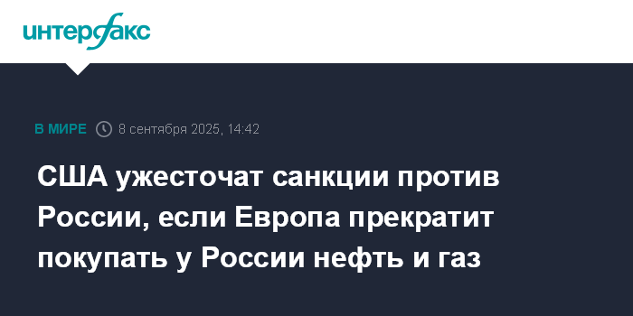США ужесточат санкции против России, если Европа прекратит покупать у России нефть и газ