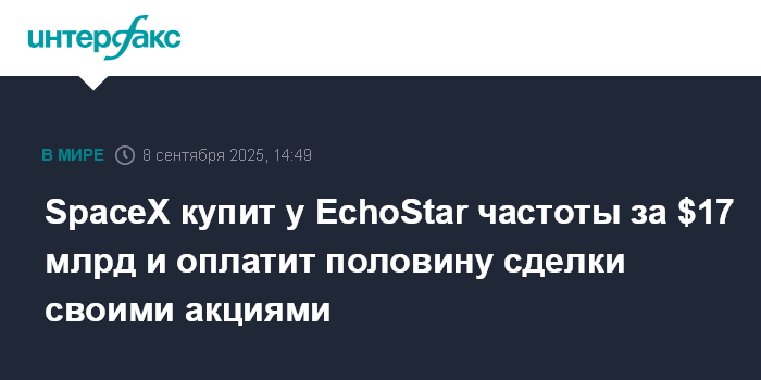 SpaceX купит у EchoStar частоты за $17 млрд и оплатит половину сделки своими акциями