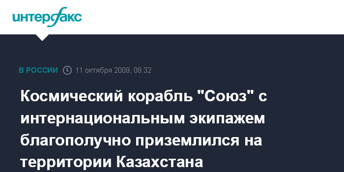 "По докладу поисковых служб, корабль с космонавтами приземлился в заданном районе, в ста километрах от казахстанского города Аркалык. Самочувствие всех космонавтов нормальное", - сообщил представитель ЦУП.