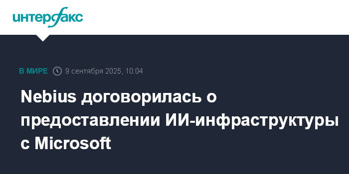 Москва. 9 сентября. INTERFAX.RU - Nebius Group Аркадия Воложа договорилась о предоставлении инфраструктуры в сфере искусственного интеллекта (ИИ) корпорации Microsoft. Как говорится в сообщении Nebius, условия соглашения предполагают, что с конца 2025 года компания начнет предоставлять Microsoft мощности, оснащенные графическими процессорами, в своем новом дата-центре в Вайнленде (Нью-Джерси).