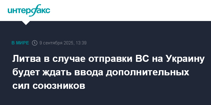Ранее глава литовского Минобороны Довиле Шакалене заявила о готовности размещения военнослужащих на Украине в рамках миротворческой миссии. Она уточнила, что это возможно при условии прекращения огня на Украине, а также если "союзники достигнут соглашения о гарантиях безопасности Киева".