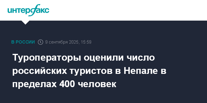 Москва. 9 сентября. INTERFAX.RU - В Непале сейчас могут находиться не более 350-400 российских туристов, высокий сезон еще не начался, аннуляций туров на ближайшие заезды пока нет, сообщилва Ассоциация туроператоров России (АТОР).
