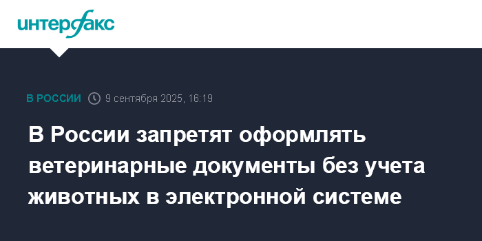 Москва. 9 сентября. INTERFAX.RU - Россельхознадзор запретит оформлять ветеринарные сопроводительные документов (ВСД) в системе "ВетИС", отражающей движение продукции, если сельскохозяйственные животные не поставлены на учет в ее компоненте "Хорриот".