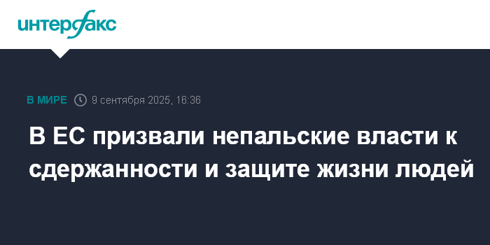 Москва. 9 сентября. INTERFAX.RU - ЕС глубоко сожалеет о гибели людей и насилии в ходе продолжающихся демонстраций в Непале, заявил во вторник официальный представитель Европейской внешнеполитической службы (ЕВС).