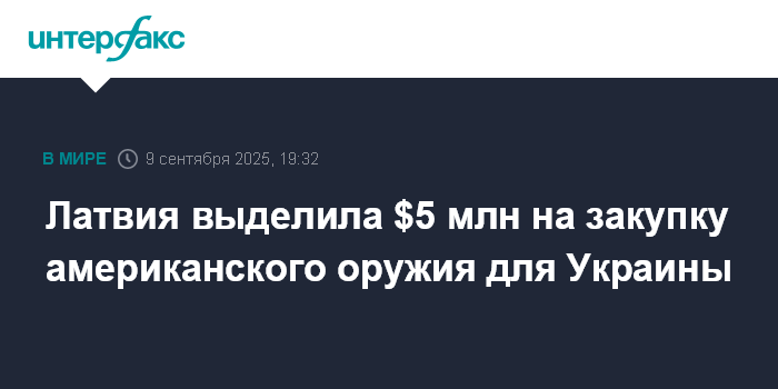 Москва. 9 сентября. INTERFAX.RU - Латвийское правительство поддержало проект распоряжения о выделении 5 млн евро на инициативу НАТО и США по поддержке Украины PURL ("Список приоритетных потребностей Украины"), сообщило Минобороны Латвии.