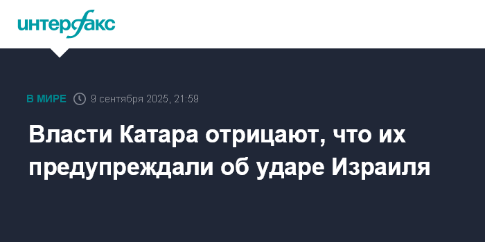 Москва. 9 сентября. INTERFAX.RU - В МИД Катара отвергли заявления США о том, что Вашингтон предупредил Доху о намерении Израиля нанести удары по руководству ХАМАС, находящемуся в катарской столице, сообщает "Аль-Джазира".