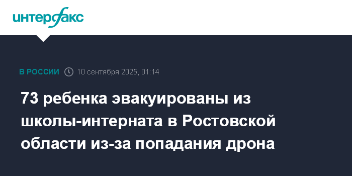 73 ребенка эвакуированы из школы-интерната в Ростовской области из-за попадания дрона