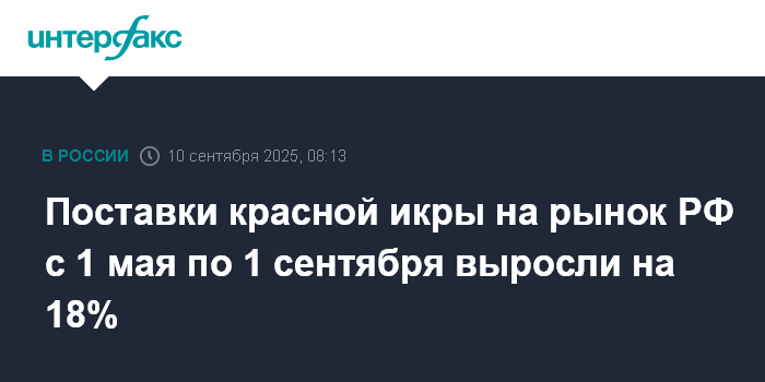 Москва. 10 сентября. INTERFAX.RU - Рост вылова тихоокеанских лососей в этом году привел к увеличению поставок красной икры на рынок РФ.