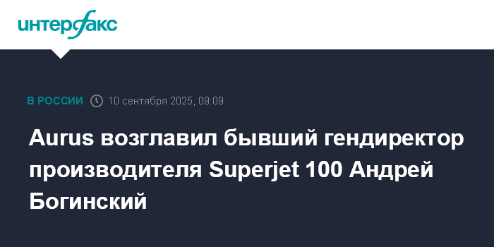 Москва. 10 сентября. INTERFAX.RU - Производителя российских люксовых автомобилей Aurus возглавил бывший гендиректор ПАО "Яковлев" Андрей Богинский, следует из данных ЕГРЮЛ. Соответствующие изменения в реестр внесены 9 сентября.