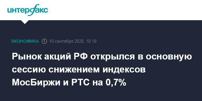 Рынок акций РФ открылся в основную сессию снижением индексов МосБиржи и РТС на 0,7%