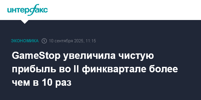 Москва. 10 сентября. INTERFAX.RU - Американская GameStop, владелец сети магазинов видеоигр и игровой электроники, резко увеличила чистую прибыль во втором финансовом квартале, завершив без убытка пятый квартал подряд.