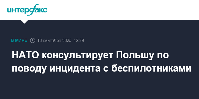 Москва. 10 сентября. INTERFAX.RU - НАТО проводит "тесные консультации" с правительством Польши по ситуации с нарушившими границу беспилотниками, сообщила в соцсетях представитель альянса Эллисон Харт.
