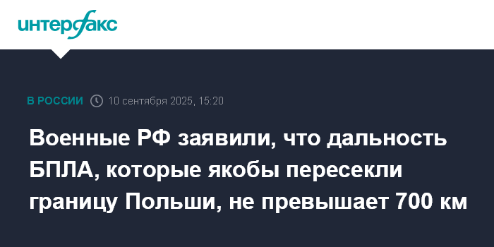 Москва. 10 сентября. INTERFAX.RU - Российские военные заявили, что на территории Польши никакие объекты для поражения не планировались.