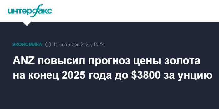 Москва. 10 сентября. INTERFAX.RU - Аналитики ANZ Group повысили прогноз цены золота на конец 2025 года до $3800 за унцию.