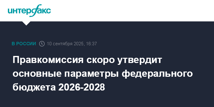 Москва. 10 сентября. INTERFAX.RU - Правительственная комиссия по бюджетным проектировкам в ближайшее время рассмотрит и утвердит основные параметры федерального бюджета на 2026 год и плановый период 2027-2028 годов, сообщил премьер-министр Михаил Мишустин на совещании по экономическим вопросам.