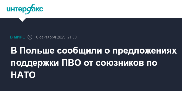 Москва. 10 сентября. INTERFAX.RU - Польша получила предложения конкретной поддержки своей противовоздушной обороны в ходе переговоров с союзниками по НАТО, заявил в среду польский премьер-министр Дональд Туск.