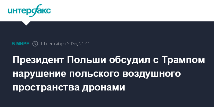 "Я только что разговаривал по телефону с президентом США Дональдом Трампом о многочисленных нарушениях воздушного пространства Польши российскими беспилотниками, произошедших сегодня ночью", - написал Навроцкий в соцсетях.