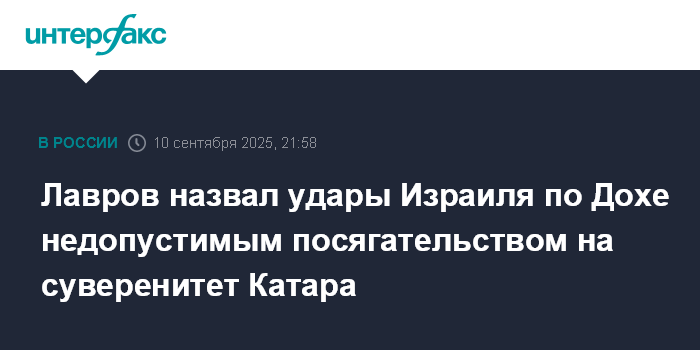 Лавров назвал удары Израиля по Дохе недопустимым посягательством на суверенитет Катара