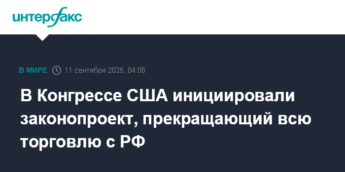 В Конгрессе США инициировали законопроект, прекращающий всю торговлю с РФ