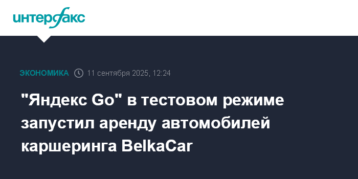 Согласно сообщению BelkaCar, партнерство предполагает возможность арендовать машины сервиса в приложениях "Яндекс Go" и "Яндекс Драйв". Функция доступна в тестовом режиме у части пользователей приложений в Москве, Санкт-Петербурге и Сочи.
