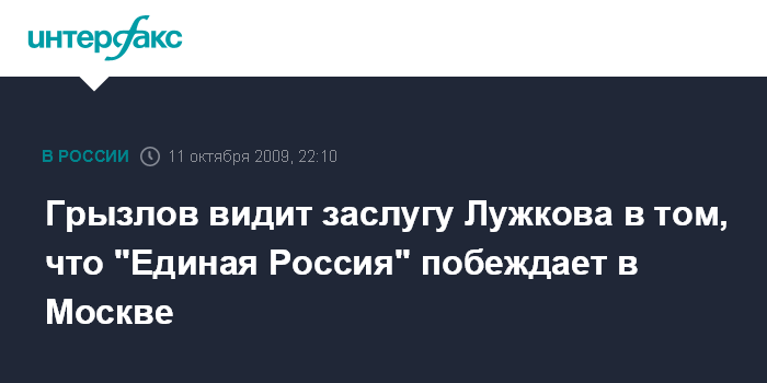 Грызлов видит заслугу Лужкова в том, что "Единая Россия" побеждает в Москве