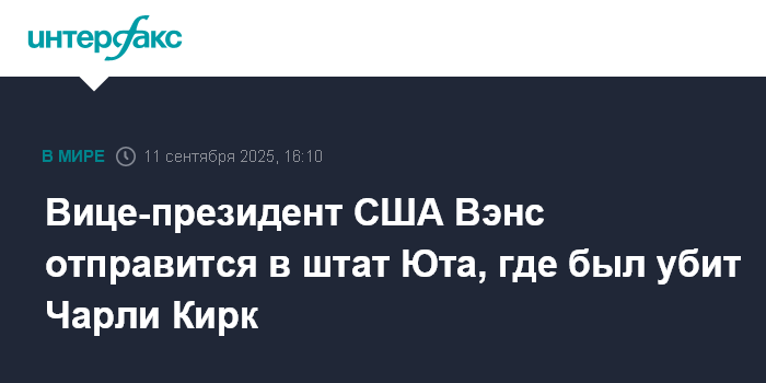 Вице-президент США Вэнс отправится в штат Юта, где был убит Чарли Кирк