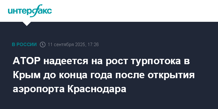 АТОР надеется на рост турпотока в Крым до конца года после открытия аэропорта Краснодара