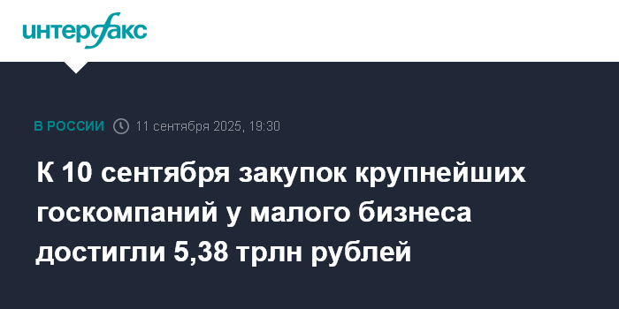 К 10 сентября закупок крупнейших госкомпаний у малого бизнеса достигли 5,38 трлн рублей