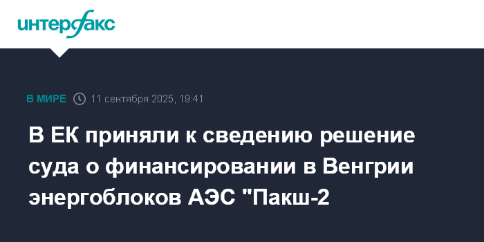 11 сентября стало известно, что постановление суда ЕС отменяет прежнее согласование Еврокомиссией финподдержки проекта Венгрией от 2017 года. Согласно материалам суда, основное финансирование проекта должно прийтись на российский кредит в размере до 10 млрд евро. При этом еще 2,5 млрд евро предполагалось профинансировать из венгерского бюджета.