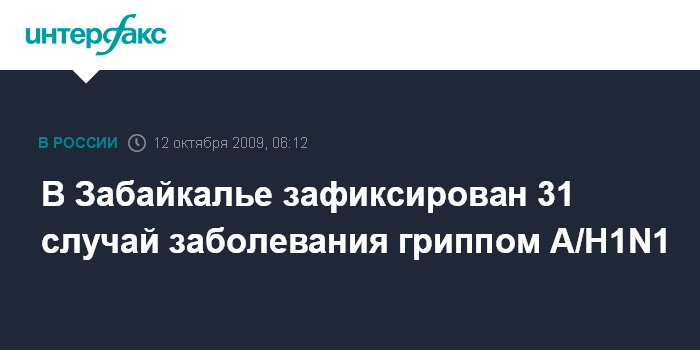 "В Чите на 11 октября подтвержден 31 случай заболевания гриппом A/H1N1", - сообщили агентству "Интерфакс-Сибирь" в краевом управлении "Роспотребнадзора" в понедельник.