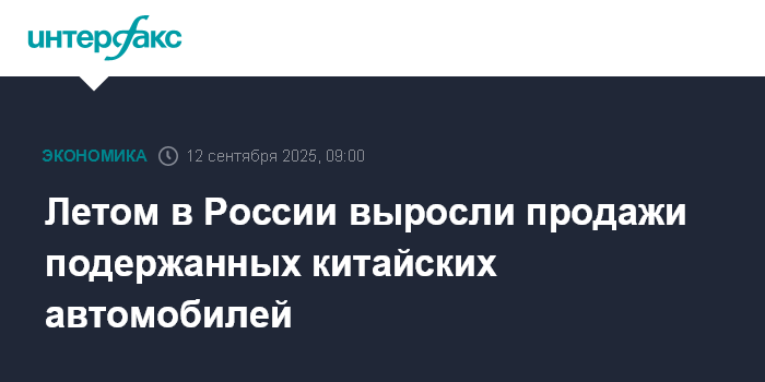 Москва. 12 сентября. INTERFAX.RU - В России летом продажи китайских автомобилей с пробегом выросли на треть, сообщила пресс-служба специализированного автопортала "Дром".