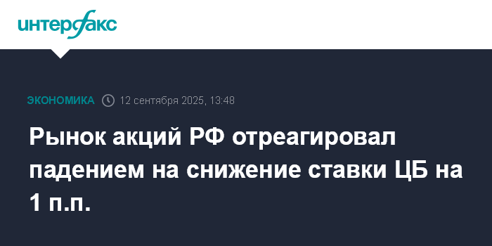 Рынок акций РФ отреагировал падением на снижение ставки ЦБ на 1 п.п.