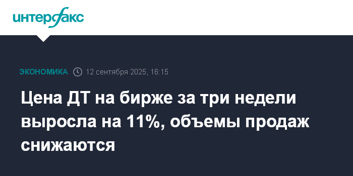 Цена ДТ на бирже за три недели выросла на 11%, объемы продаж снижаются