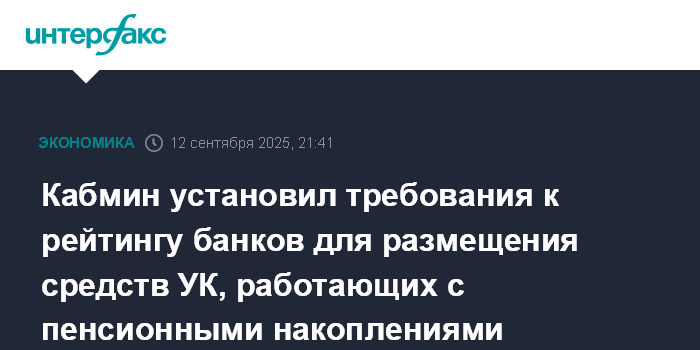 Кабмин установил требования к рейтингу банков для размещения средств УК, работающих с пенсионными накоплениями
